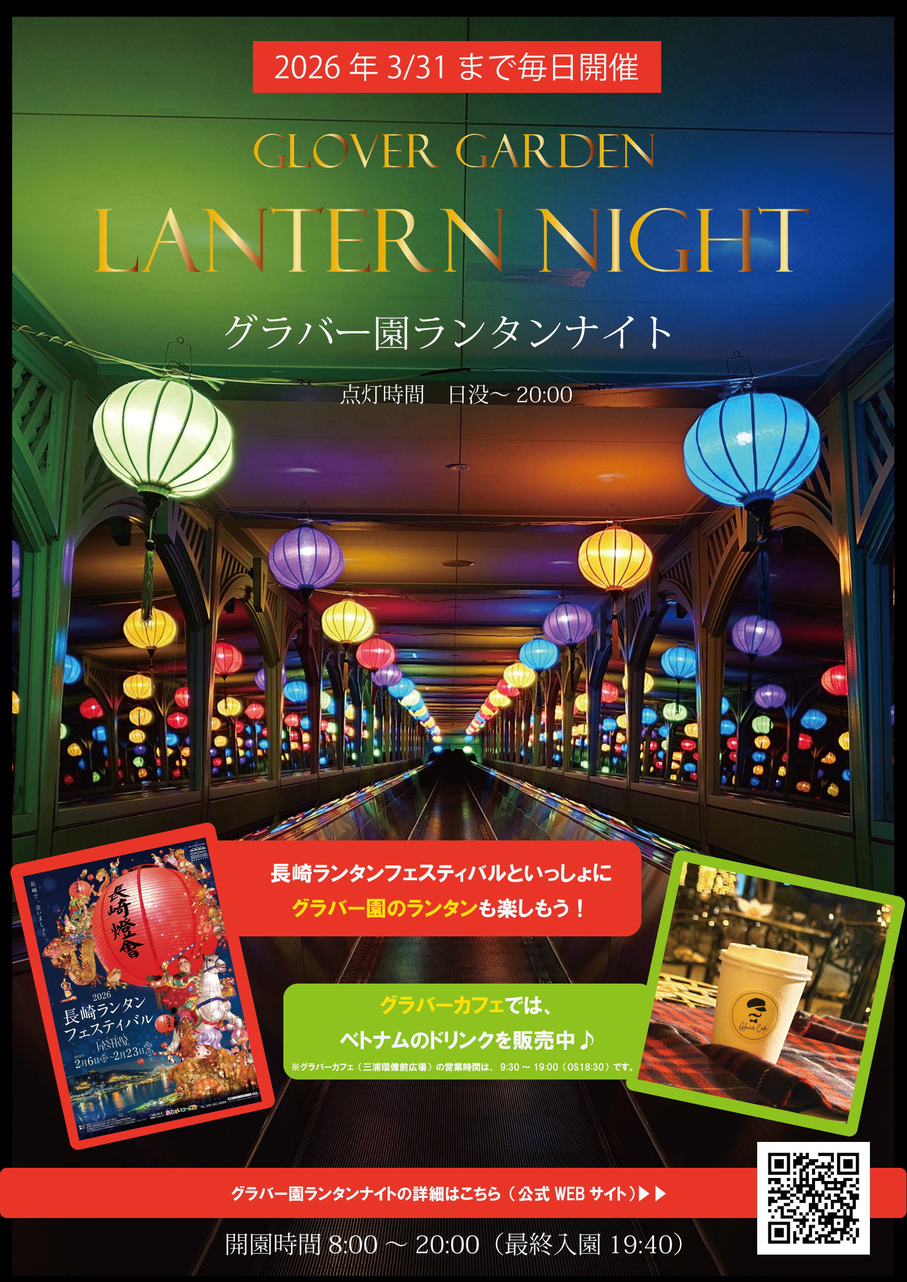 2026年3/31まで!約400 個のランタンが庭園を彩る「グラバー園ランタンナイト」開催中。