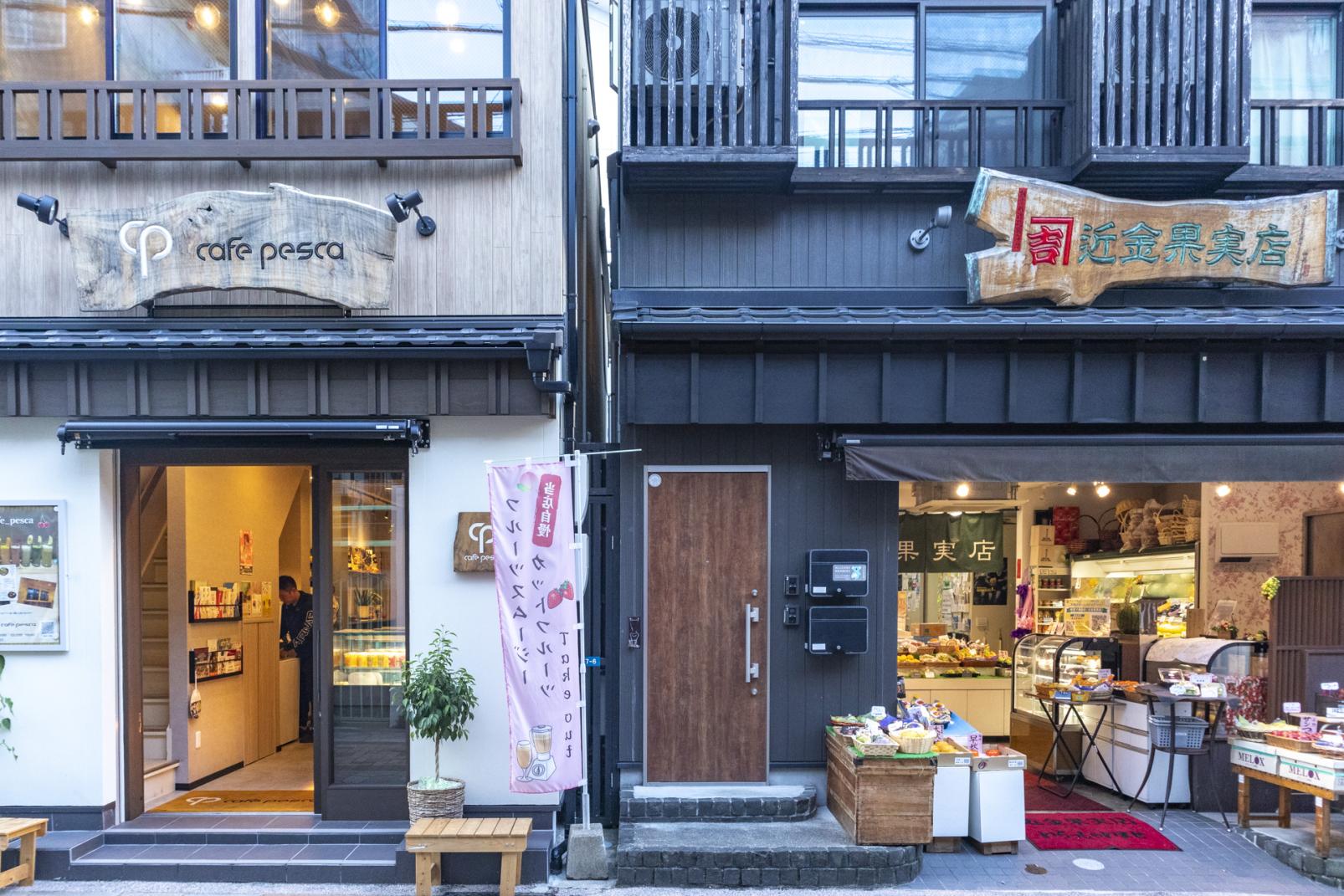 中通りの老舗〈近金果実店〉の真隣にある〈cafe pesca〉