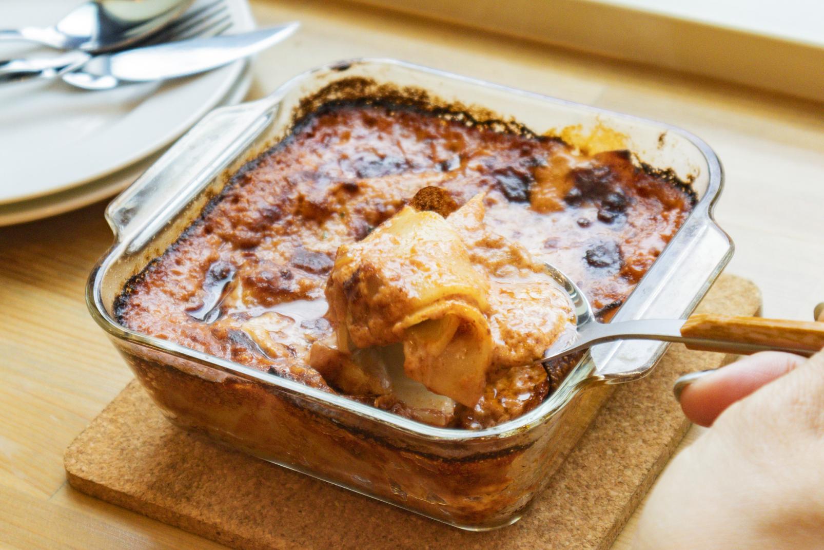 フルーツだけではない本格的なカフェメニュー。「モッツァレラチーズの特製ラザニア」は熱々を召し上がれ