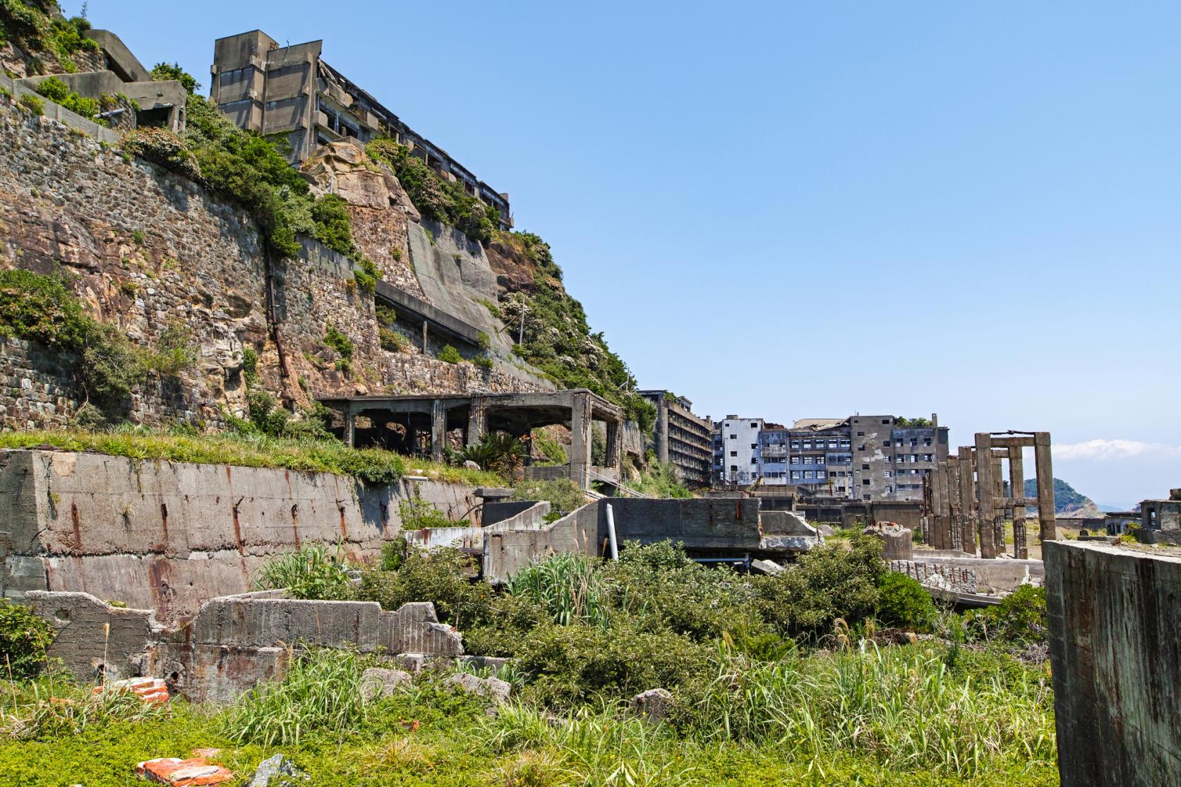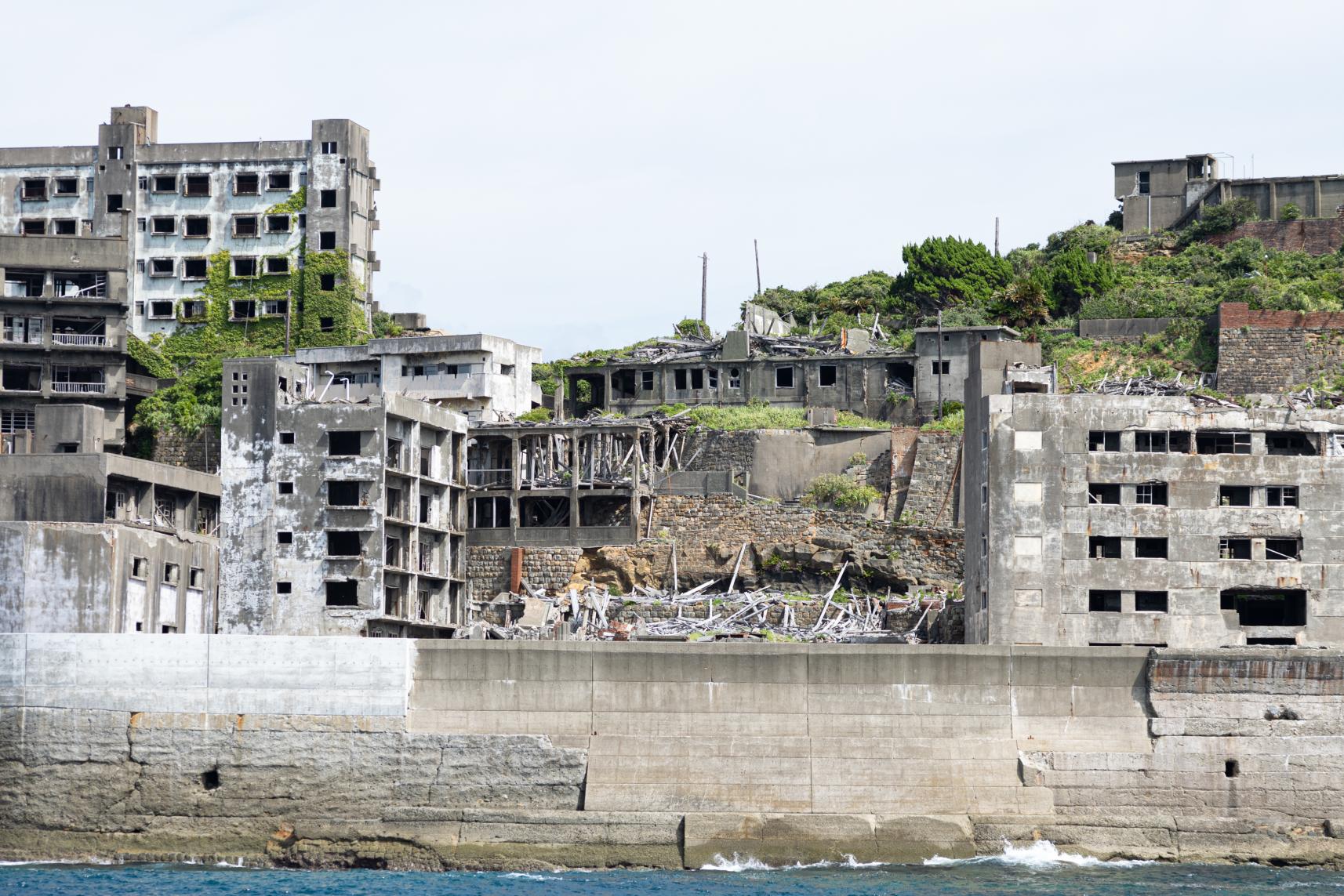 その後、エネルギー革命により石炭産業が衰退。軍艦島は1974(昭和49)年1月に閉山し、わずか3カ月後には無人島に。島内には廃墟となった鉄筋コンクリート造りのアパートや炭坑の生産跡地が残り、かつての暮らしの気配と日本の近代化の歴史を静かに伝え続けています。