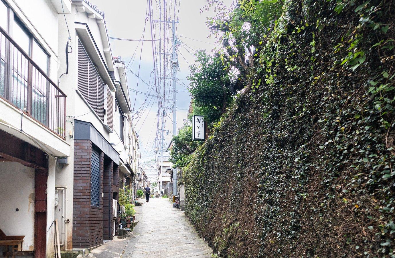 場所は、唐人屋敷会場から目と鼻の先。壁一面、蔓が覆った趣き十分の石畳を行きます