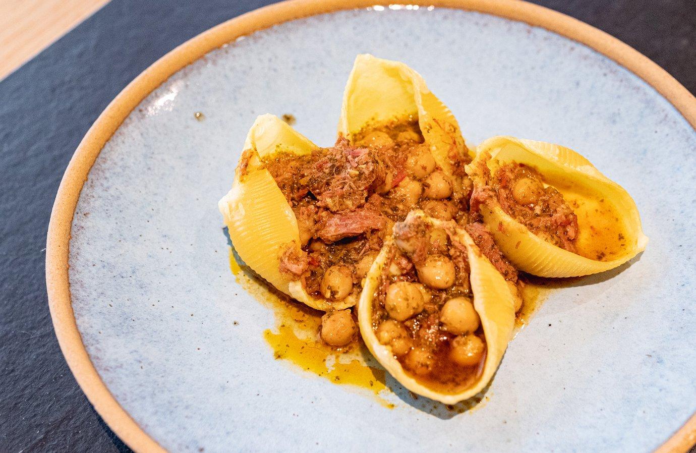 料理人の間でもほとんど知られていない幻の島原産羊を使用した「島原羊のチリコンカン コンキリオーニ」。パスタ・リゾット・ピッツァから選択が可