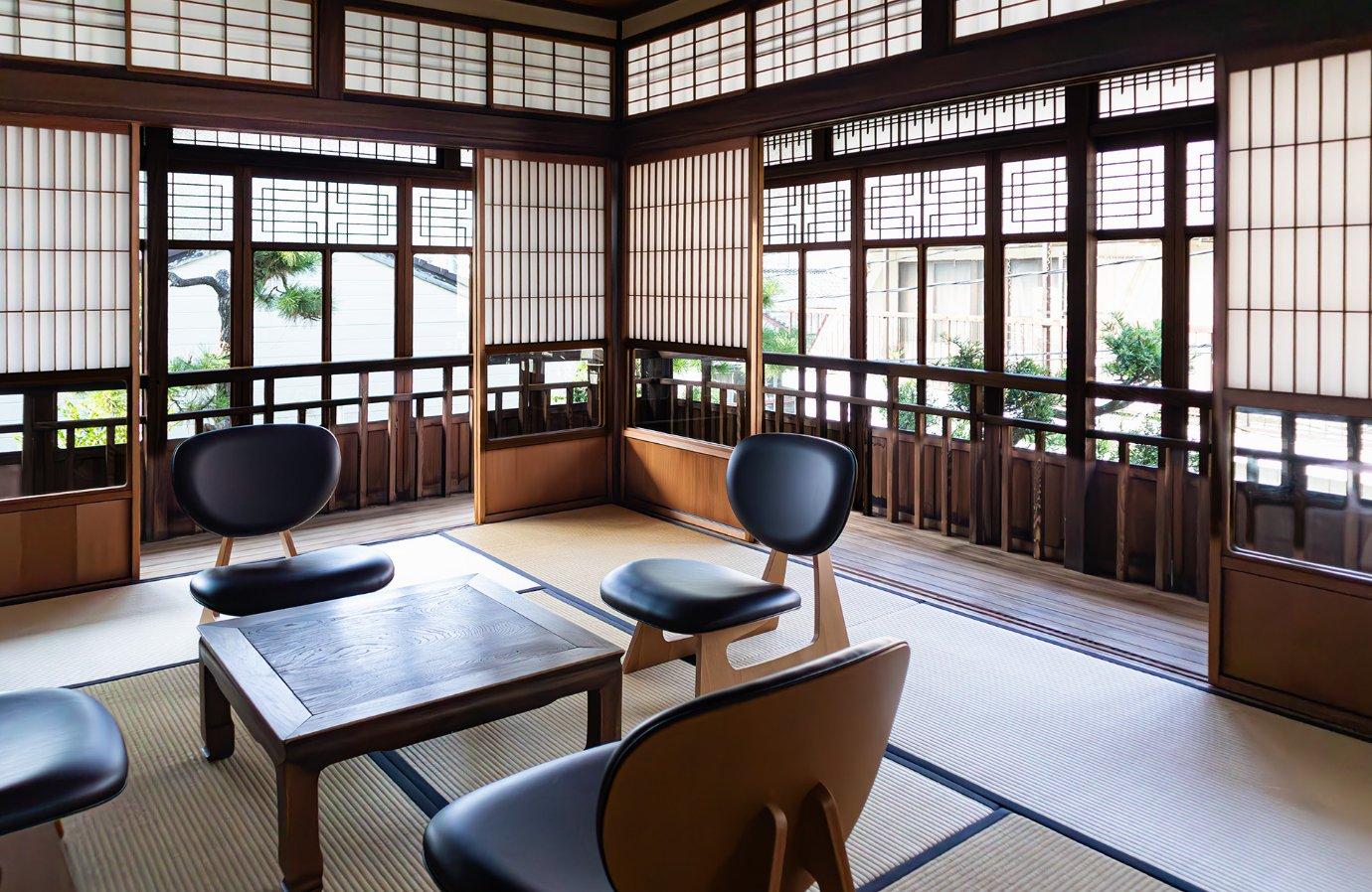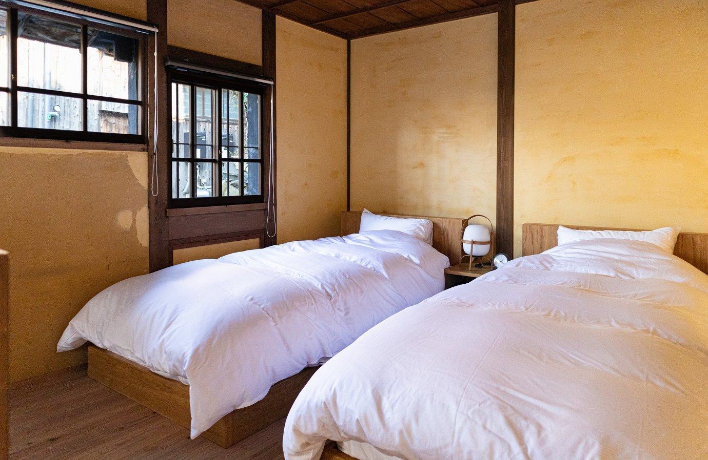 3部屋あるオーベルジュ。こちらは「主屋 OMOYA」の一室。広々とした室内と、風情ある縁側廊下