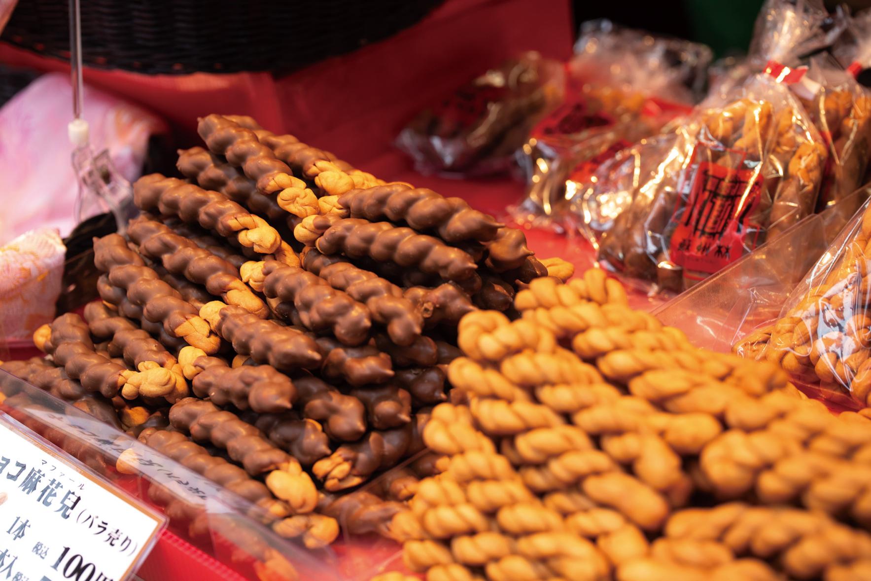 ランタンフェスティバル期間中は、この時、この場所でしか味わうことのできない、限定グルメが存在します。その多くが、長崎自慢の名物をよりおいしくアレンジしたものばかり。今回は3つをご紹介します。一つ目は「チョコマファール」。長崎では定番人気の中華菓子・マファール、通称“よりより”をチョコがけしたもの。中華料理や中華菓子の老舗〈蘇州林〉が贈る、春節期間限定の逸品です。二つ目は「海老チーズハトシ」。長崎名物・ハトシを提供する〈山ぐち仕出し店〉からは、大人気の「海老ハトシ」の中にチーズを入れたバージョンが屋台で限定販売。チーズと海老の相性も良いので、ぜひ試してみてください。屋台は毎年出店する場所が変わる場合もあるので、お店探しも楽しみの一つ。3つ目は、湊公園会場すぐそば、新地中華街に店を構える〈石橋蒲鉾店〉の「ちくわの磯辺揚げ」。こちらももちろん期間限定で登場。揚げたてのおいしさ、磯の風味が抜群。多い時は一日で1,800本も出るのだとか。売り切れることもしばしば、ということなので、お買い求めはお早めに。