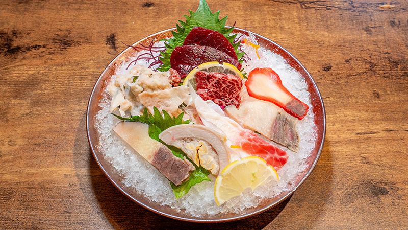 伝統の鯨食文化 くじらは長崎にあり。 長崎県下では、平戸市のつぐめの鼻遺跡から鯨の捕獲や解体に使った石器や、対馬市の佐賀貝塚から鯨の骨で作った道具が出土するなど、鯨との関係は縄文時代から始まっています。 江戸時代の長崎県下は、当時の古式捕鯨の中心地であり、壱岐、対馬、五島、平戸の各地に漁場が点在し、多くの鯨組(捕鯨を行う組織)が操業していました。捕鯨業は江戸時代最大の産業であり、沿岸住民に多くの雇用を生み出したため、「くじら一頭で七浦が潤う」と言われるほどでした。 捕鯨漁場からも近く、出島貿易で栄えた長崎には、裕福な人々が暮らしており、高級で美味しいとされる部位(ハシカワやウネス)が届けられ、洗練された鯨食文化が発展しました。今も、県民一人あたりの鯨肉消費量は日本一と言われています。 長崎に根付く、くじらの文化 昔から美味しい鯨が食されていた長崎ですが、食文化だけでなく祭りや工芸品など、鯨と深く関係しているものが長崎市内には数多く見られます。 「勇魚取繒詞」北海道大学大学院水産科学研究院図書室所蔵 鯨料理・割烹 とんぼ 小嶺等さん 食文化 江戸時代、長崎近海で獲られた鯨は大村湾にある東彼杵に集まり、九州各地へと流通していきました。 出島貿易で栄え、裕福な人が暮らしていた長崎市には、鯨の中でも高級で美味しい部位が届けられていたと言われ、このことが長崎の鯨文化の発展に繋がりました。 現在も正月や結婚式などお祝いの席で鯨が食べられ、街中にも鯨料理を提供する店が数多くあります。 祭り [鯨の潮吹き] 国の重要無形民族文化財にも指定されている長崎市の諏訪神社の祭礼「長崎くんち」では、万屋町による「鯨の潮吹き」が奉納されています。 長崎市万屋町の旅館「呼子屋」に泊まっていた小川島の鯨組主中尾甚六の勧めで、安永7(1778)年に諏訪神社に奉納したことが始まりとされています。 [くじら舟] 市内各地で開催される郷くんちのうち、「小ヶ倉くんち」では、小ヶ倉町二丁目自治会から「くじら舟」が奉納されます。 射止めた鯨を料理人が解体し、大旦那が率いる鯨商会がユーモラスな競り人の口上に乗せてたたき売りをするという筋書きで演じられます。 万屋町の「鯨の潮吹き」 小ヶ倉くんちの「くじら舟」 工芸品 鯨は、ハクジラとヒゲクジラの2種類に大別されますが、長崎市には、ハクジラであるマッコウクジラの歯を削って作られる「くじら工芸」があります。 堅くなめらかな材質で、やさしく落ち着いた風合いを持つ装飾品や、置物などの工芸品は全て手作業で作られています。 これらの工芸品は全国的にも珍しく、守っていきたい長崎の文化の一つです。 ※原料であるマッコウクジラの歯はワシントン条約以前に入手されたものです。 長崎の鯨を味わう 最近では、特に若い世代は鯨を食べる機会が少なくなっており、鯨食文化が薄れつつあります。 そのような中、鯨食文化が大切に守られてきた「鯨のまち長崎」には、今も鯨専門店や鯨料理を食べられる飲食店がたくさんあります。 鯨の赤肉は、高たんぱく・低脂肪・低カロリー! さらに、疲労回復効果がある「バレニン」を大量に含むなど、栄養たっぷりの食材です。 ご家庭で、飲食店で、ぜひ長崎の美味しい鯨を味わってみてください。 鯨料理・割烹 とんぼ 鯨の消費日本一の長崎で唯一の鯨専門店!豊富なメニューと鯨の質問にもお答えできる女将やスタッフがお待ちしております。本当の鯨の味を堪能してください。 おすすめメニュー ・ふぐコース(トラフグ)※冬のみ ・鯛の塩釜(マダイ) ・鯨3点盛り(クジラ) 店名 鯨料理・割烹 とんぼ 住所 長崎市銅座町11-13 電話 095-820-8234 営業時間 18:00〜21:30(LO) 定休日 日曜 銅座 呑 長崎特産である鯨をはじめとする、新鮮でこだわり抜いた海鮮料理を提供しています。長崎で獲れた旬の地魚と山海の幸を、お好みに応じて調理いたします。 おすすめメニュー ・はも湯引き(ハモ) ・あじ子南蛮漬(アジ) ・刺身盛合せ(キビナ、ヒラメ、ウチワエビ等など) 店名 銅座 呑 住所 長崎市銅座町14-15 電話 095-829-3788 営業時間 18:00~22:30(日・祝日~21:30) 定休日 火曜 のさ庵 天然ものを中心に地魚の刺し身を、豊富な地酒とともに楽しむ。そんな粋な過ごし方ができる大人の居酒屋です。昼の御膳は女性に人気。ゆっくり過ごせる半個室も。 おすすめメニュー ・お刺身の盛合せ ・鯨のさえずりはりはり鍋 ・うちわ海老フライ 店名 のさ庵 住所 長崎市鍛冶屋町6-54 電話 095-824-0031 営業時間 11:30~15:00(LO14:00)、17:00~23:00(LO22:00) 定休日 無休 くじら料理が食べられる飲食店は、店頭の「くじらあります」の暖簾が目印! 鯨肉取り扱い店舗一覧 鯨と海の幸 井上海産物「勇魚」 https://www.e-isana.com/ 株式会社 日野商店 http://www.hino-s.co.jp/index.html