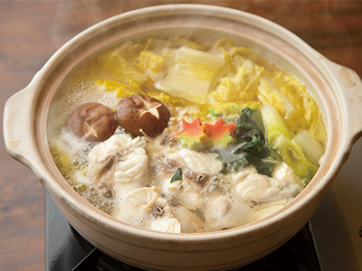 戸石の漁港から近いという利点を活かし、新鮮かつ良心的な値段でトラフグ料理を提供しており、入りやすさも魅力。あっさりとした昆布出汁がおいしい鍋は、トラフグの身がふんわり柔らかな食感で、噛みしめるたびにじんわりと旨みが体の中に染みわたっていきます。通販も可能なので、まずは実食してみて。トラフグコースは5,800円(要予約)。