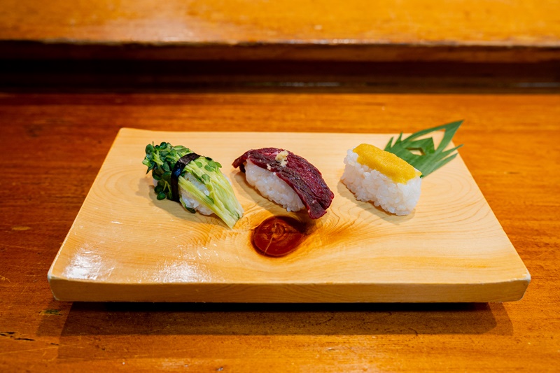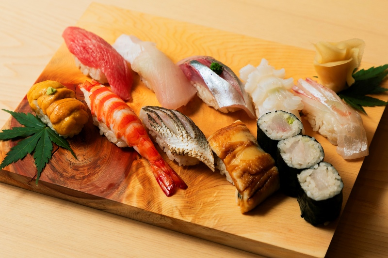 長崎のすし さしみがうまけりゃ、すしもうまい。 さしみシティ長崎から、すしの魅力も発信すべく、長崎の魚を提供する飲食店「さしみシティ賛同店舗」にすし店が続々増えています!地元スーパーでも新鮮なおいしいすしが食べられるのは長崎ならでは。たくさん食べてみんなでさしみシティを盛り上げていきましょう。 長崎ならではのすし 四季を大切にしたすしを提供しています。豊富な魚種を誇る長崎だからこそ四季折々、変化に富んだすしを提供できます。新鮮なヒラスやブリを使ったコリコリ食感の「白鉄火」は長崎ならではの味わいです。 タイチ寿司 木本 太市 さん 長崎白鉄火 鉄火巻きというとマグロで作ったものが一般的ですが、長崎では「白い鉄火巻」が定番です。 これは、長崎人が白身のハマチやブリ、ヒラス(ヒラマサ)といった魚のコリコリ食感を好むからだと言われています。 全国でも珍しい「長崎白鉄火」、ぜひ味わってみてください。 タイチ寿司 軍艦島生まれの大将が握るこの寿司店では、地元長崎で揚がった新鮮な魚介が美味。ブリやハマチ、ヒラス(ヒラマサ)などの白身魚を巻いた「白い鉄火巻」もおススメ。 おすすめメニュー ・長崎にぎり(アジ、ヒラス、鯨のサエズリ、カラスミほか) ・長崎刺盛り(ヒラス、ヒラメ、イカ) ・白い鉄火巻き(ヒラス、ブリ、ハマチ) 店名 タイチ寿司 住所 長崎市銅座町5-16 電話 095-826-2744 営業時間 17:00~23:00 定休日 日曜、年末年始 鮨 ひのか 【完全予約制】地元長崎をはじめ、全国各地の食材を吟味し、ひとつひとつを丁寧に仕立てた江戸前の技でつくる鮨。総檜造りの空間にて、四季折々に愉しんでいただけるよう心を尽くします。 おすすめメニュー ・おまかせコース¥22,000-(アジ、赤ウニ(夏)、大目鯛(夏)、鮑、渡蟹など(仕入れによる)) ・握りコース(ランチのみ)¥8,800-(アジ、赤ウニ(夏)、大目鯛(夏)など(仕入れによる)) 店名 鮨 ひのか 住所 長崎市油屋町2-12 電話 050-1808-4640 営業時間 12:00~14:00/18:00~22:00 定休日 日曜、月曜 銀屋町 まさる 長崎天然物にこだわり、にぎり・刺身をお出ししております。県外のお客様も足繫く通うお店です。 おすすめメニュー ・にぎり天然物(10種類ほど) ・揚げ出し(穴子) ・焼きもの(サワラ、タチウオなど) 店名 銀屋町 まさる 住所 長崎市銀屋町2-3 電話 095-820-9888 営業時間 18:00~21:00 定休日 月曜・火曜 すし提供店舗