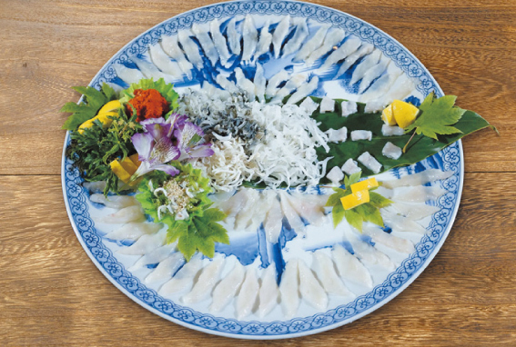 ・ふぐ刺しうどんセット(トラフグ、シマフグ)