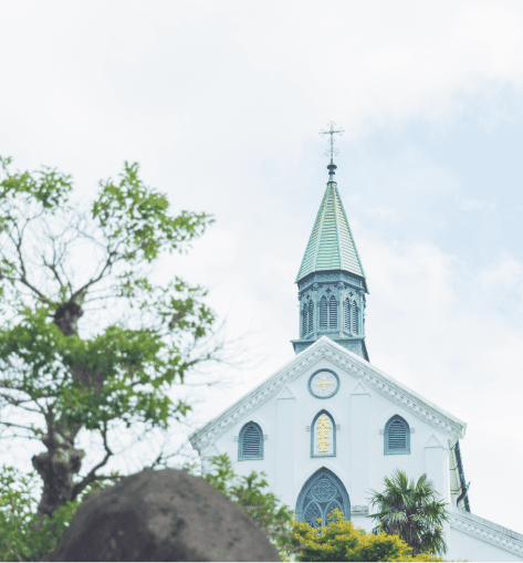 グラバー園を歩いて降りると見えてくるのは、ヨーロッパの街にあるような真っ白な教会。