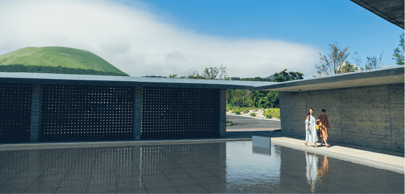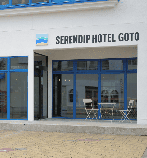 後ろに鬼岳、目の前には海。五島の美しい景色をそのまま取り込んで満喫できる工夫が、あちこちに散りばめられている。