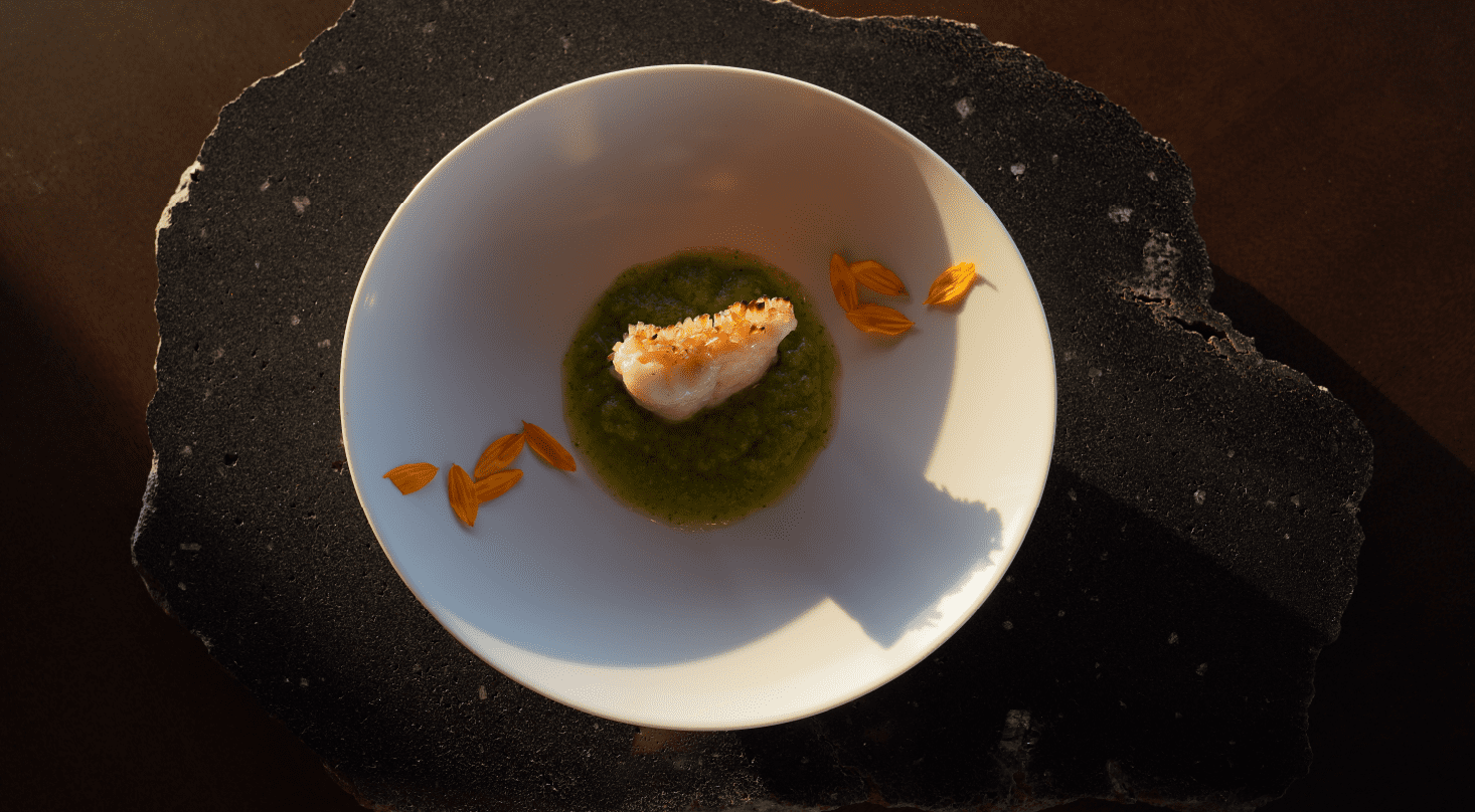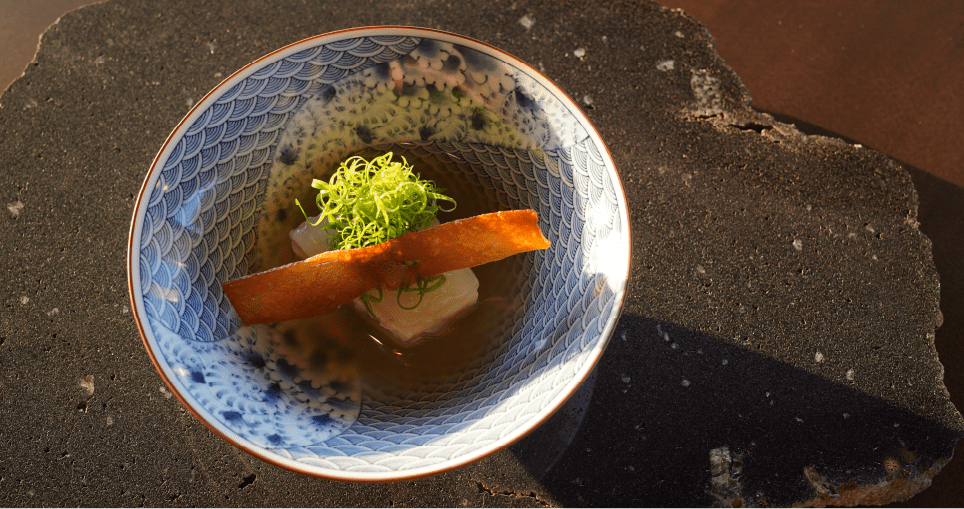 五島の近海で獲れる種類豊富で新鮮な魚、旬の野菜。地元のおいしい食材に光というテーマをプラスした、ここでしか味わえない創作和食。五感が満たされる。
